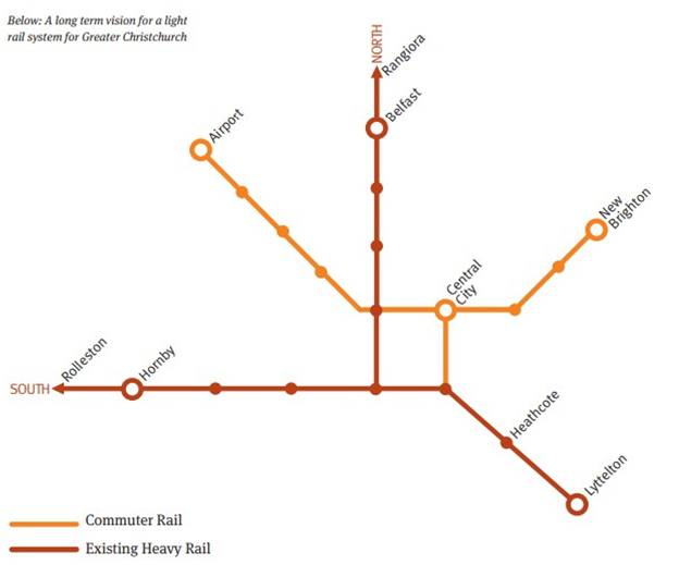 A few weeks ago I brought my nephew to the airport early in the morning. We took the bus there. After I assured myself that he had been checked in alright, I caught the bus back home. While the bus to the airport was quite full, only one other passengers was on the bus in the other direction—and she got off two stops later. Because it was quite early in the morning I drifted off to a waking dream. Somehow the many decisions that made this bus the way to travel flashed before my eyes. I thought of the gravel roads between orchards that had been upgraded to sealed roads, the engineers who had reserved a railway corridor west of the city of Christchurch, and the engineers who sat in smoke-filled committee rooms to decide that it would not be needed after all; I seemed to hear the voices that clamoured for a highway instead and saw the bulldozers build a four-lane road dividing the growing airport precinct from the city. I thought of vested interests talking to politicians at fine functions, of impatient motorists wanting a quicker way to avoid the city centre, of environmentalists protesting wider roads. The hopes of the Draft Central City Recovery Plan from 2011 came to mind. If that had been followed, I may not have been travelling by bus, but rather would have caught a tram-train from the airport to Fendalton, before transferring to another train to Papanui. But the earthquake recovery minister and other vested interests made sure that vision did not come to pass. The journey was interrupted briefly as the bus stopped at the new traffic lights at the intersection of Breens Road and Harewood Road. The recent acrimonious politics about this road came to mind. As the bus purred closer to Papanui my mind focused on the effort required to ensure that—like this bus—many buses in Christchurch were now electric.
